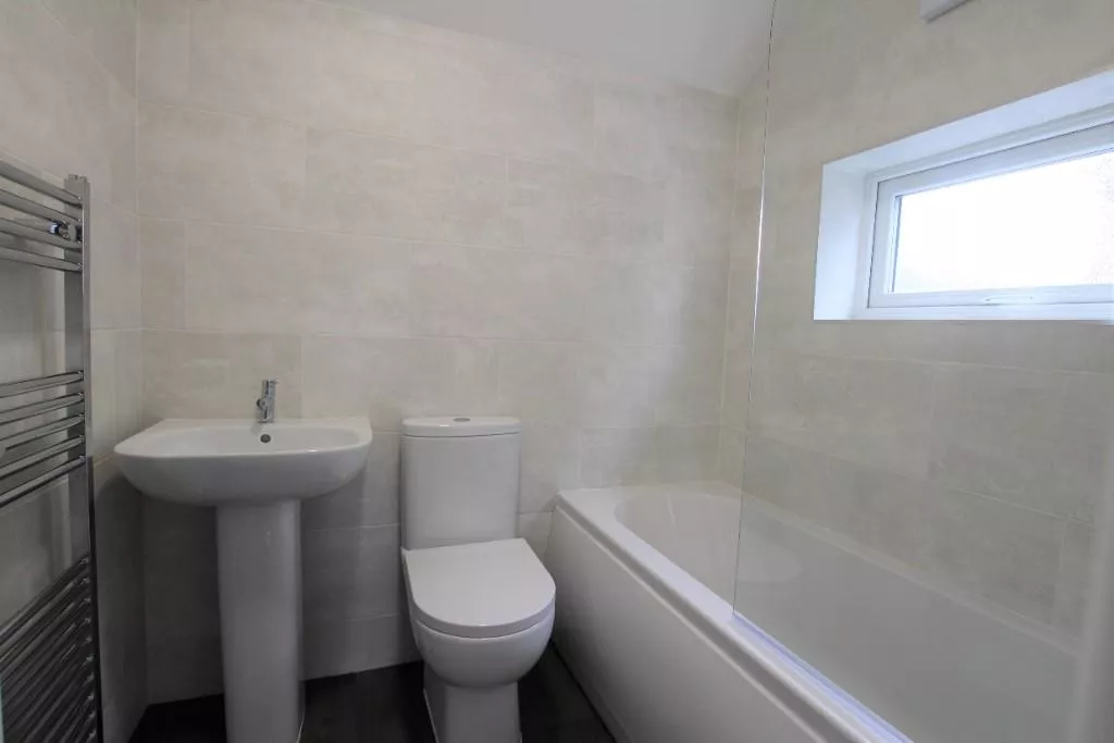 • FULLY TILED WHITE BATHROOM SUITE WITH OVER-BATH SHOWER