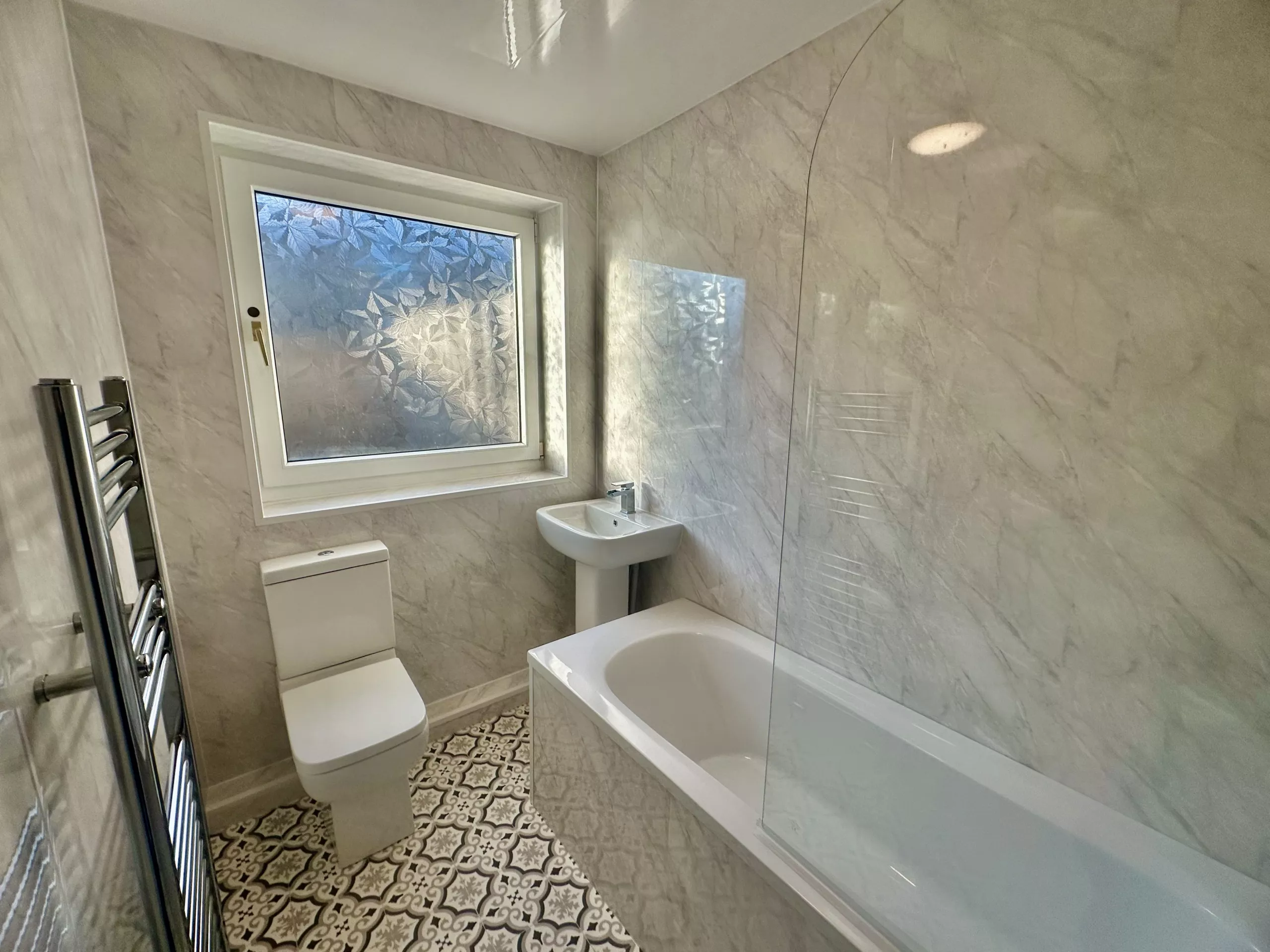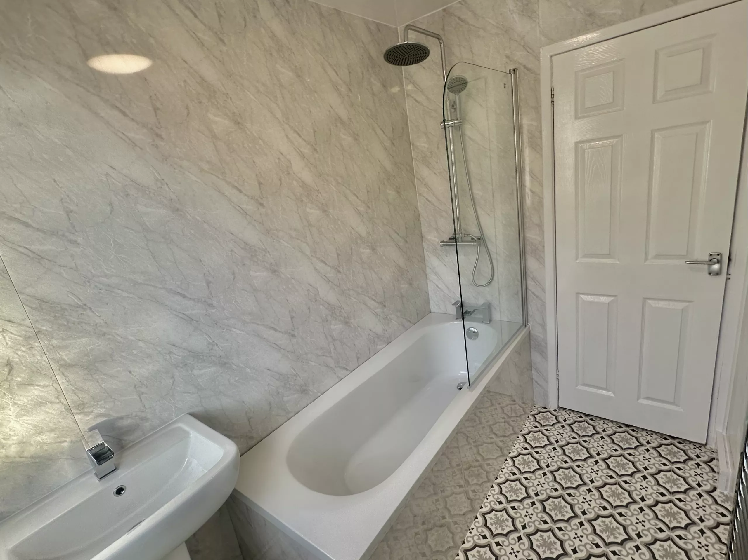 - NEW MODERN BATHROOM SUITE WITH OVER BATH SHOWER